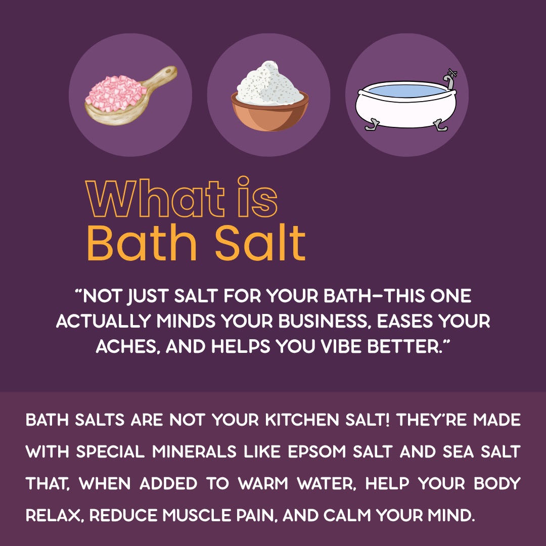 Bath salt helps relax tired muscles, ease body aches, reduce stress, and support post-workout recovery thanks to its magnesium content.