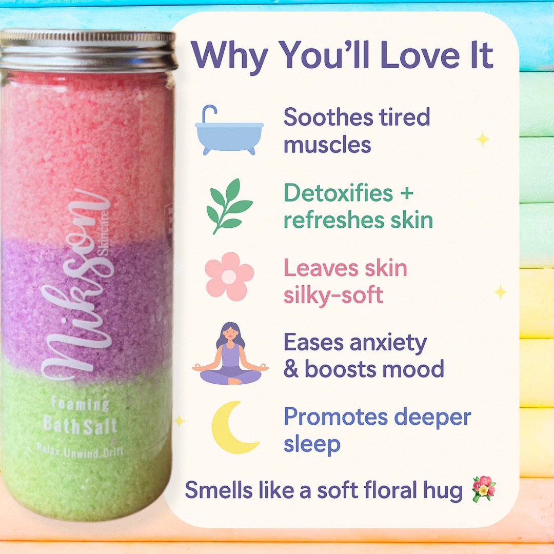 Yes. Soaking in this foaming bath salt helps relieve muscle pain, body stiffness, and post-workout soreness. The Epsom salt supports muscle relaxation, while warm water and gentle foam help calm tired joints and ease everyday aches caused by long hours, stress, or physical fatigue.
